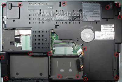 Langkah ketiga adalah lepaskan semua sekrup yang berjumlah 20 buah dibagian bawah laptop.